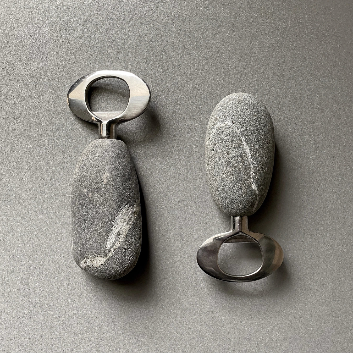 Good beer rocks! Open your favorite drinks in nature-inspired style with this stainless steel bottle opener. Each handle is crafted from naturally tumbled stones, shaped by the coast for a sturdy, ergonomic grip that feels as good as it looks. Perfect for fall tailgates, holiday parties, and cozy nights in, this piece is a must-have for beer enthusiasts and a thoughtful gift for him, host gift, or stocking stuffer. Durable, unique, and designed to bring a touch of the outdoors to every occasion. *Stones vary in shape, size, color, texture, weight and may or may not have natural mineral deposits.