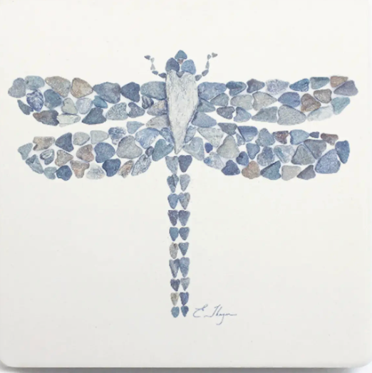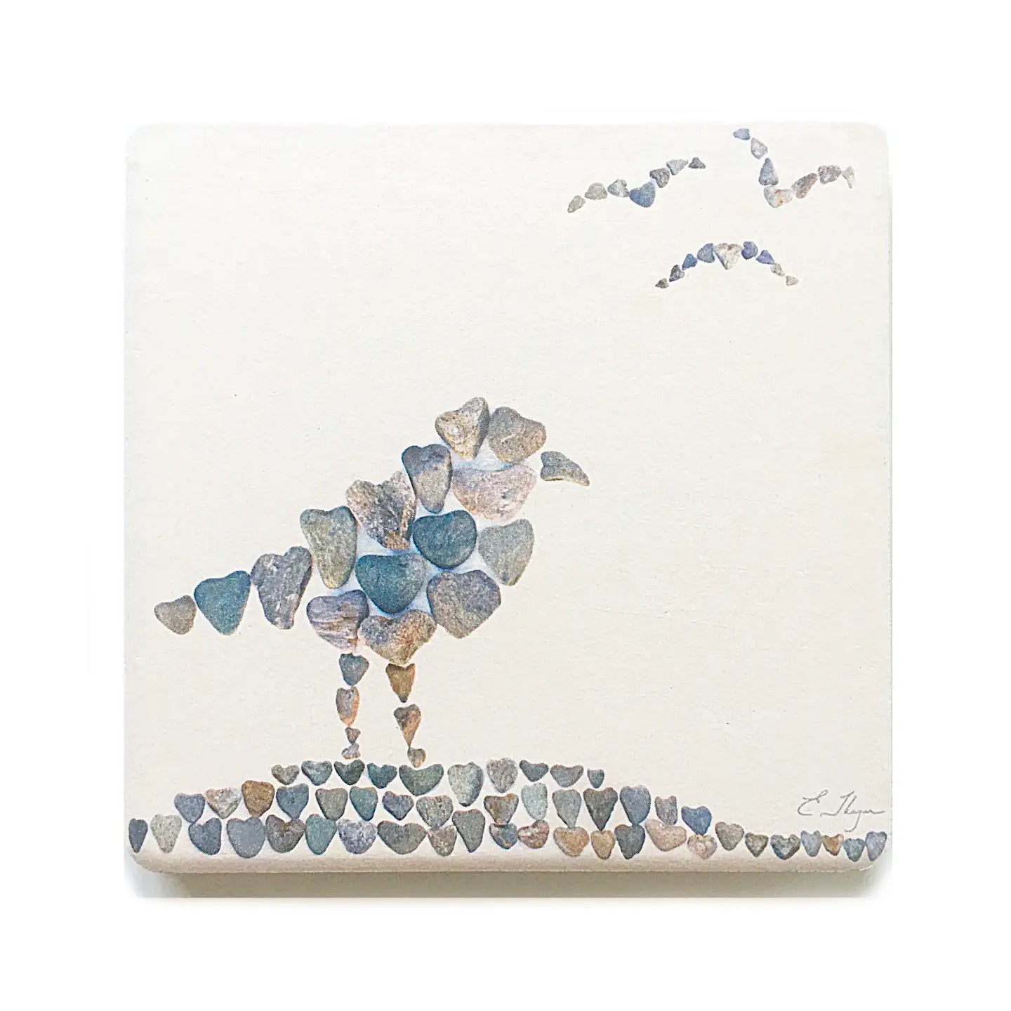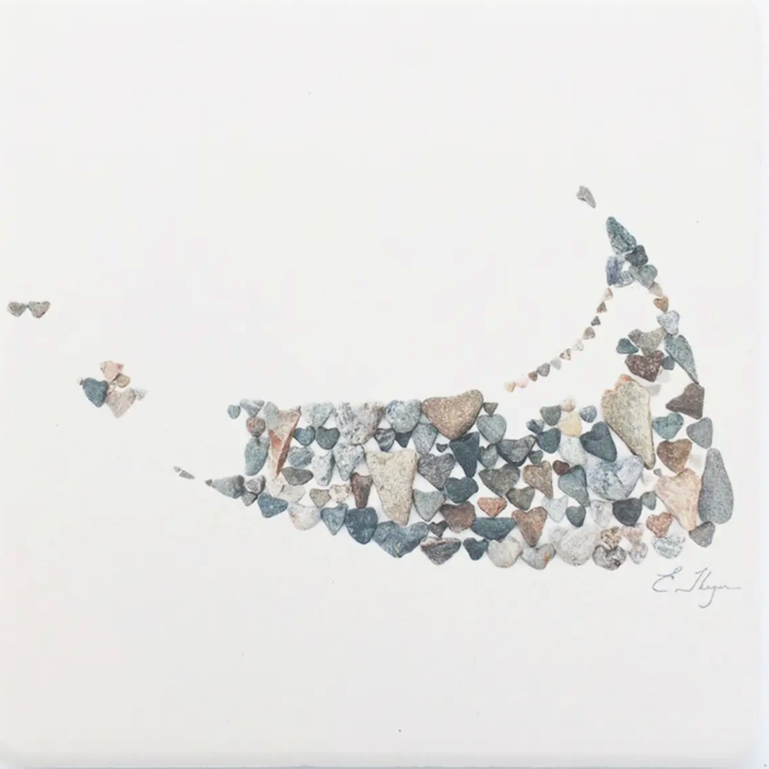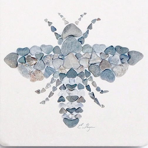 The coasters have been printed with the photographed designs they created with their collection of naturally-formed heart-shaped rocks from the Maine coast.