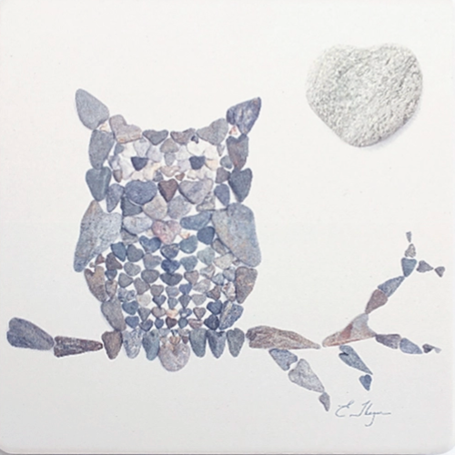 Founded in 2012, Love Rocks Me® features their photographs of two to three-and-a-half foot flat-lay designs they've created with their collection of hundreds of heart shaped rocks from Maine's beaches and islands. Each design has been photographed from a ladder outdoors beneath diffused sunlight. This brings out the natural beauty in each heart rock and adds a three-dimensional, realistic quality to the art in print.