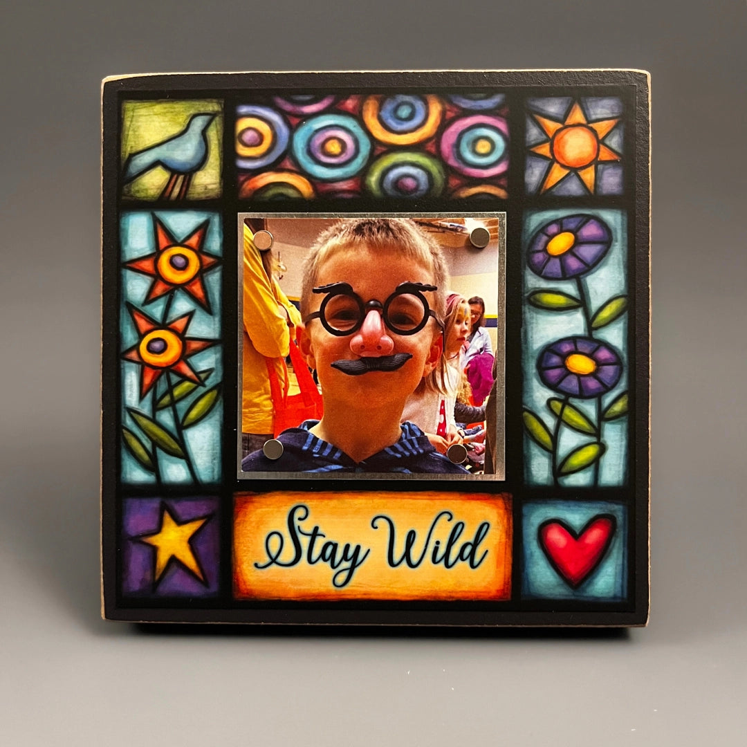 This 5.25" x 5.25" wood frame holds a 2" x 2" photograph on a sheet metal square with four super-strong rare earth magnets. It is printed with archival ink on archival paper which is attached to wood and UV coated to last a lifetime.