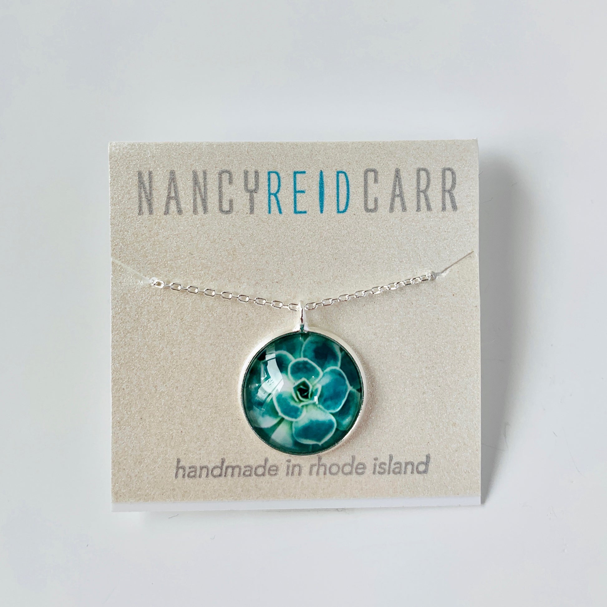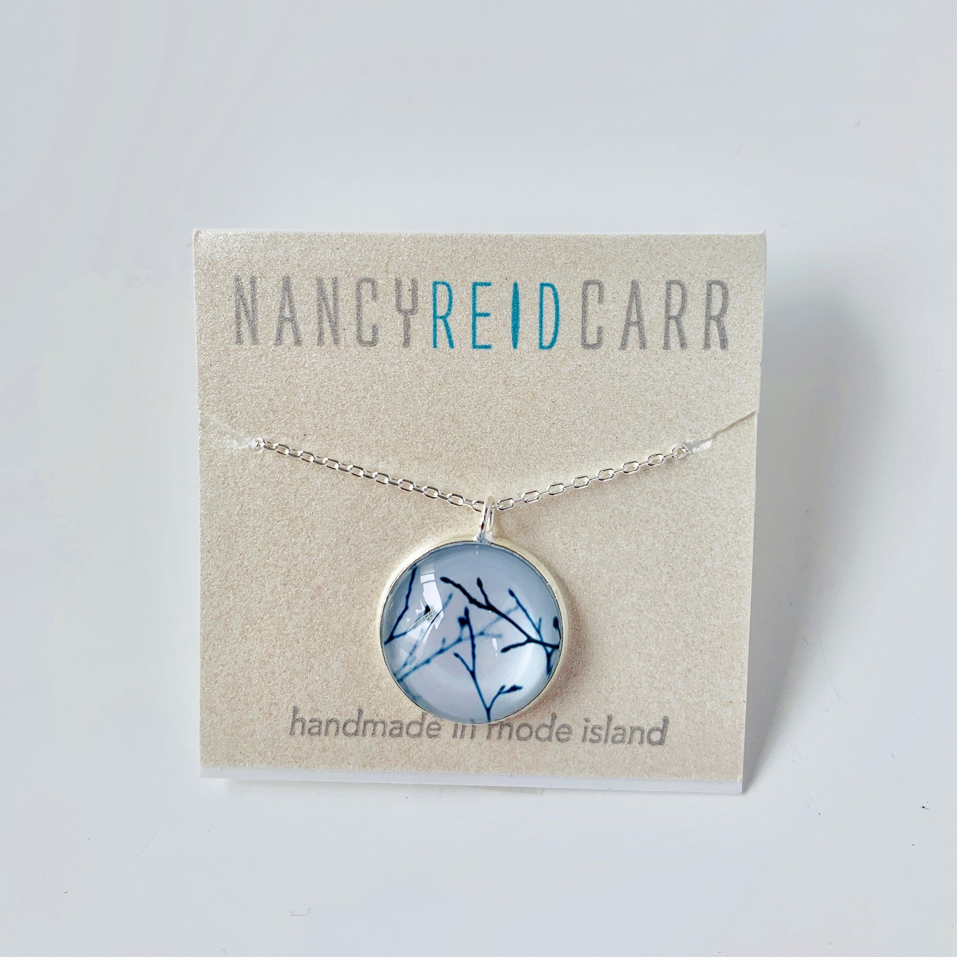 Necklaces are designed using Nancy's original photographs. The metallic photographs are displayed under a beautiful dome magnifying glass. The chain is sterling silver, and the bezel is silver plated brass. Pair them with one of our matching bangle bracelets, earring sets, or a coordinating thin or wide cuff bracelet. Or mix and match designs to create your own style.
