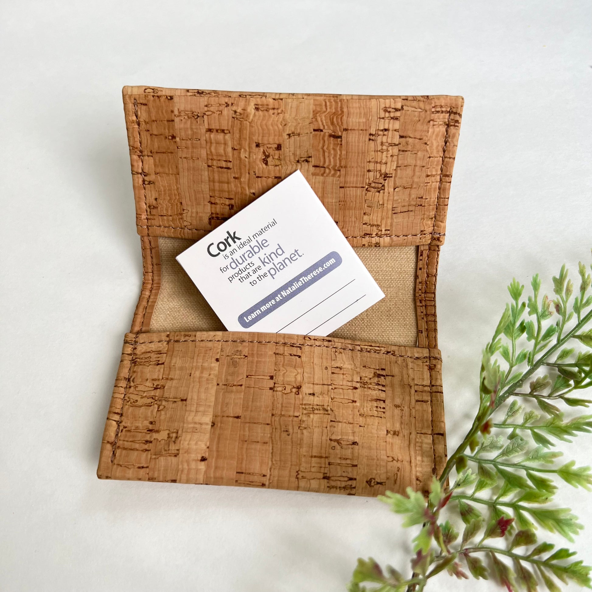 Simple bifold wallet that fits cash and credit cards. Handmade from eco-friendly cork.